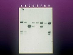 Biologists have some neat tricks for seeing the structures of genes. The details are too much to relate, but the end result is an Xray film in which parts of the gene show up as dark bands. The precise pattern of these bands tells us about the specific forms of a gene that are present in different individuals. While we all (humans, that is) have the same genes, (which make us all humans) we also have very slight differences in the sequences of most genes (which make us all different). The sequence differences are what we can see by looking at the X ray film.